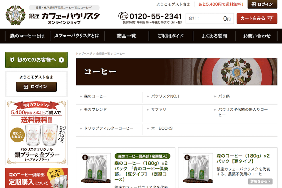 カフェーパウリスタもよく聞くコーヒー豆の通販サイトです。「森のコーヒー」というブランドで知られています。銀座を拠点とする歴史あるコーヒー屋さんです。