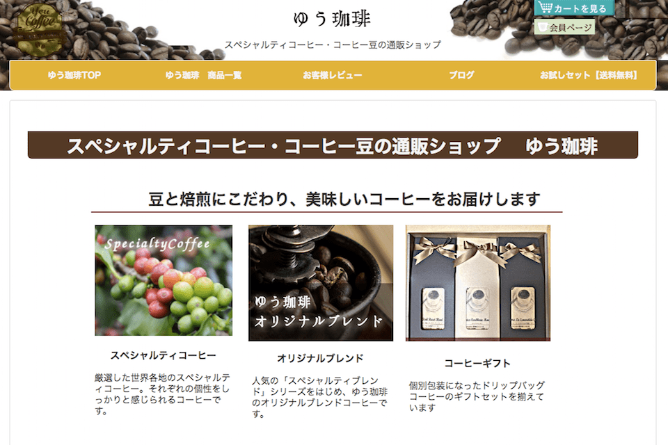 ゆう珈琲ではスペシャルティコーヒー豆をはじめとしたさまざまなコーヒー豆を通信販売しています。独自のブレンドコーヒーも含めると数十種類のコーヒー豆を販売しておりバラエティが豊富です。