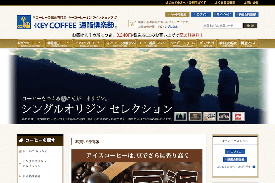 キーコーヒーは言わずと知れた日本の老舗コーヒー会社です。そんな大手のキーコーヒーですが、「キーコーヒー通販倶楽部」という名前でコーヒー豆や関連グッズの通販事業も行っています。
