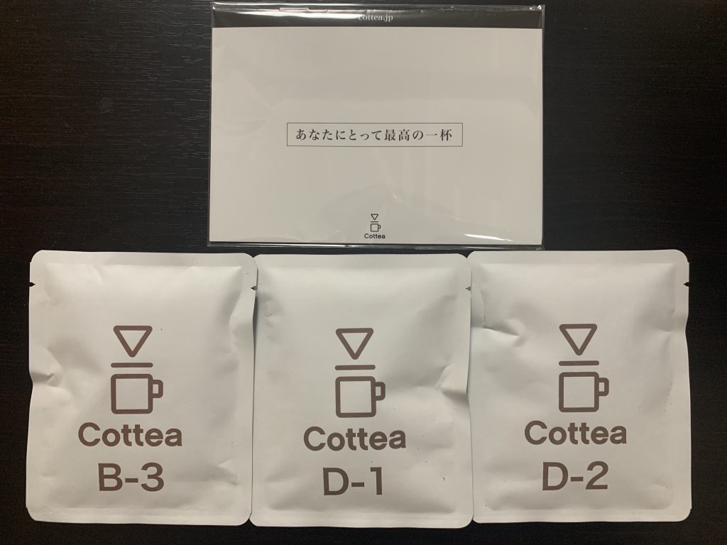 今回購入したのは、3種類のコーヒーが無料でお試しできる「無料お試しセット」