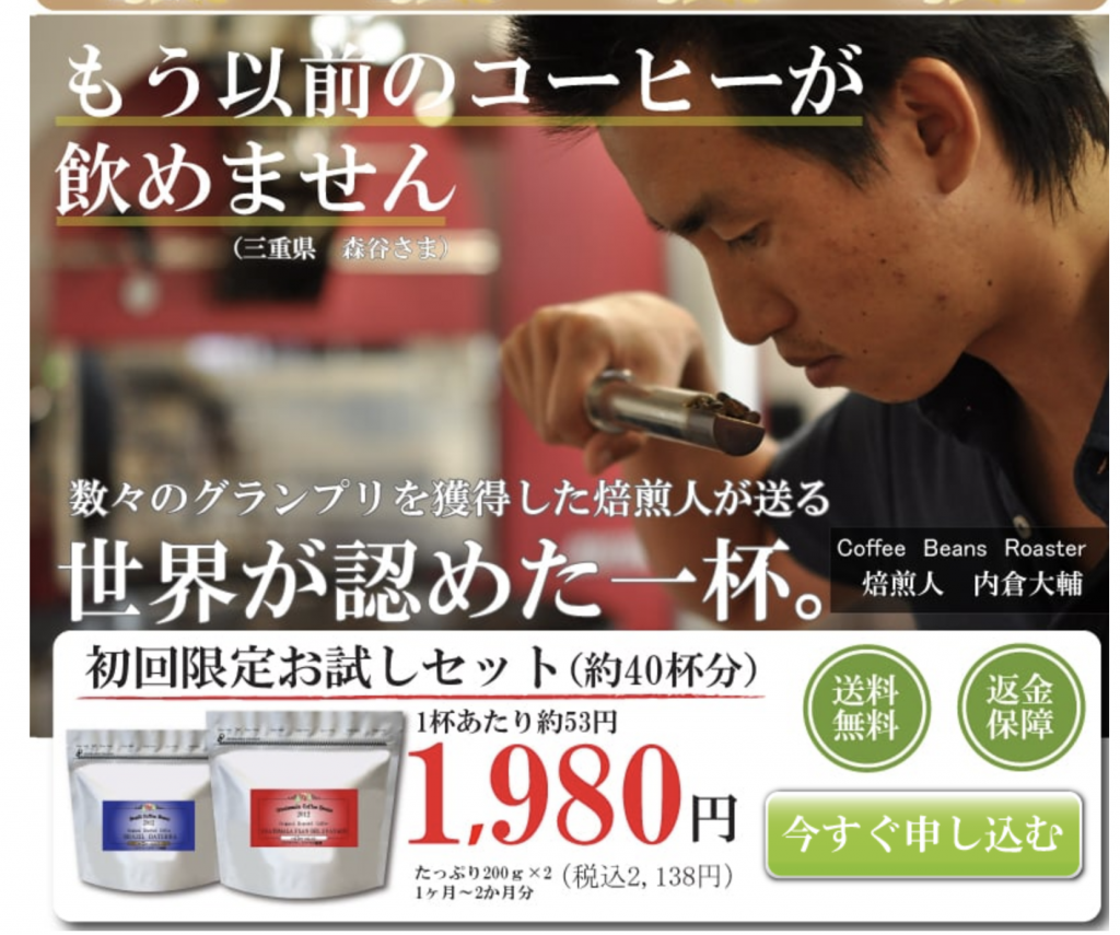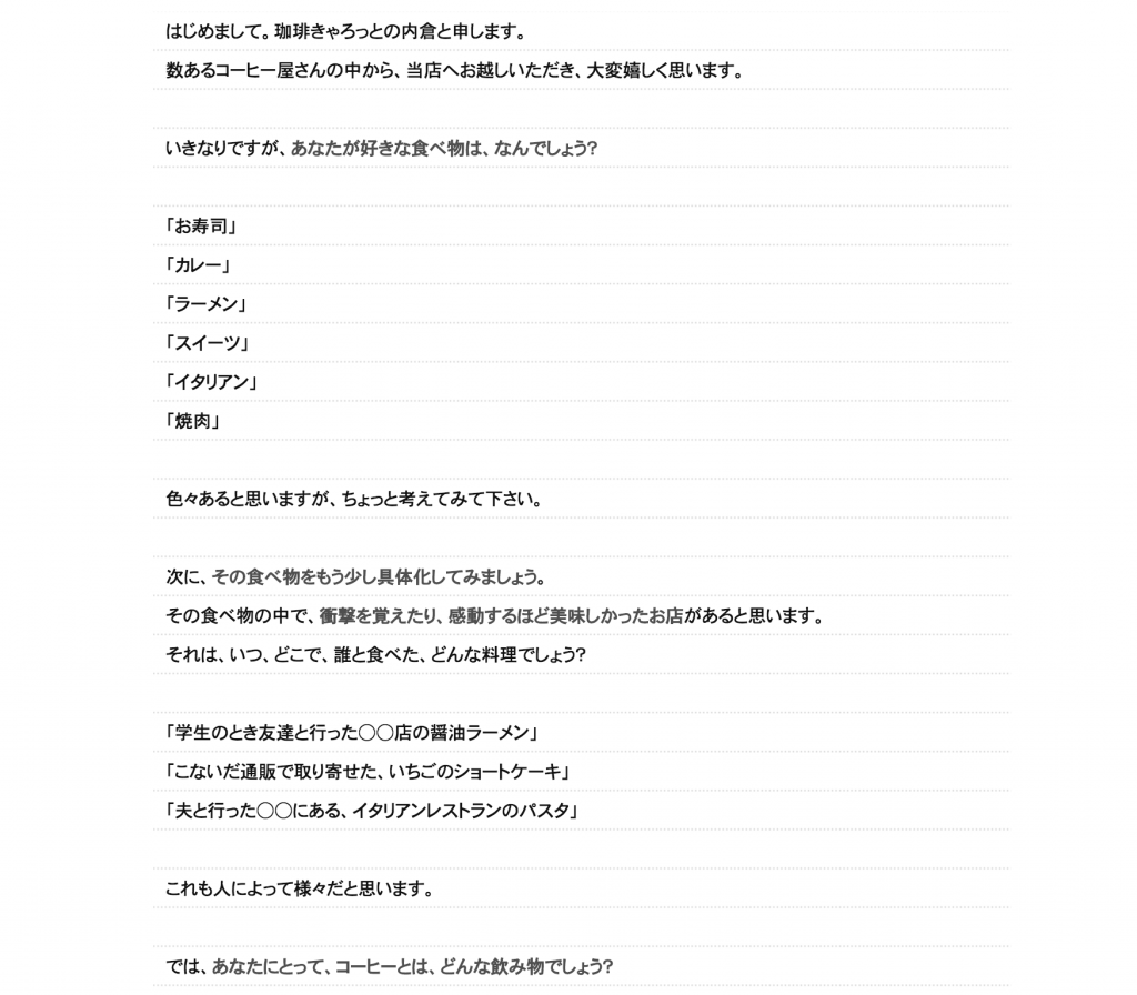 これは珈琲きゃろっとで豆を購入する際に出てくるページです。焙煎士内倉さんの珈琲への熱い思いが伝わります。