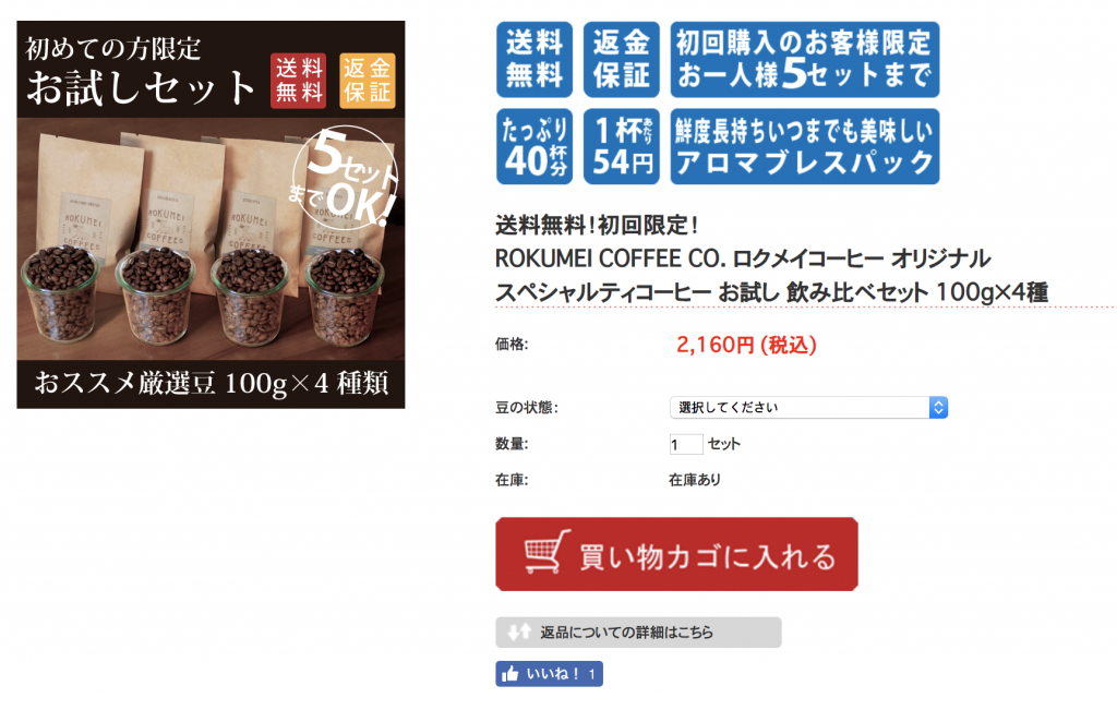 初回限定は100g500円程度と激安となってますが、一般購入には100gに950円前後と多少高めの豆が多いです。