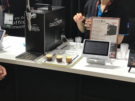 キーコーヒーのブースでは、これ以外にも「COLD CREMA」の提供を行なっていました。これは日本でも流行っていますが、ビールのような見栄えでコーヒーを楽しむことができるというものであり、コーヒーの泡を楽しみながら飲むことが出来ます。
