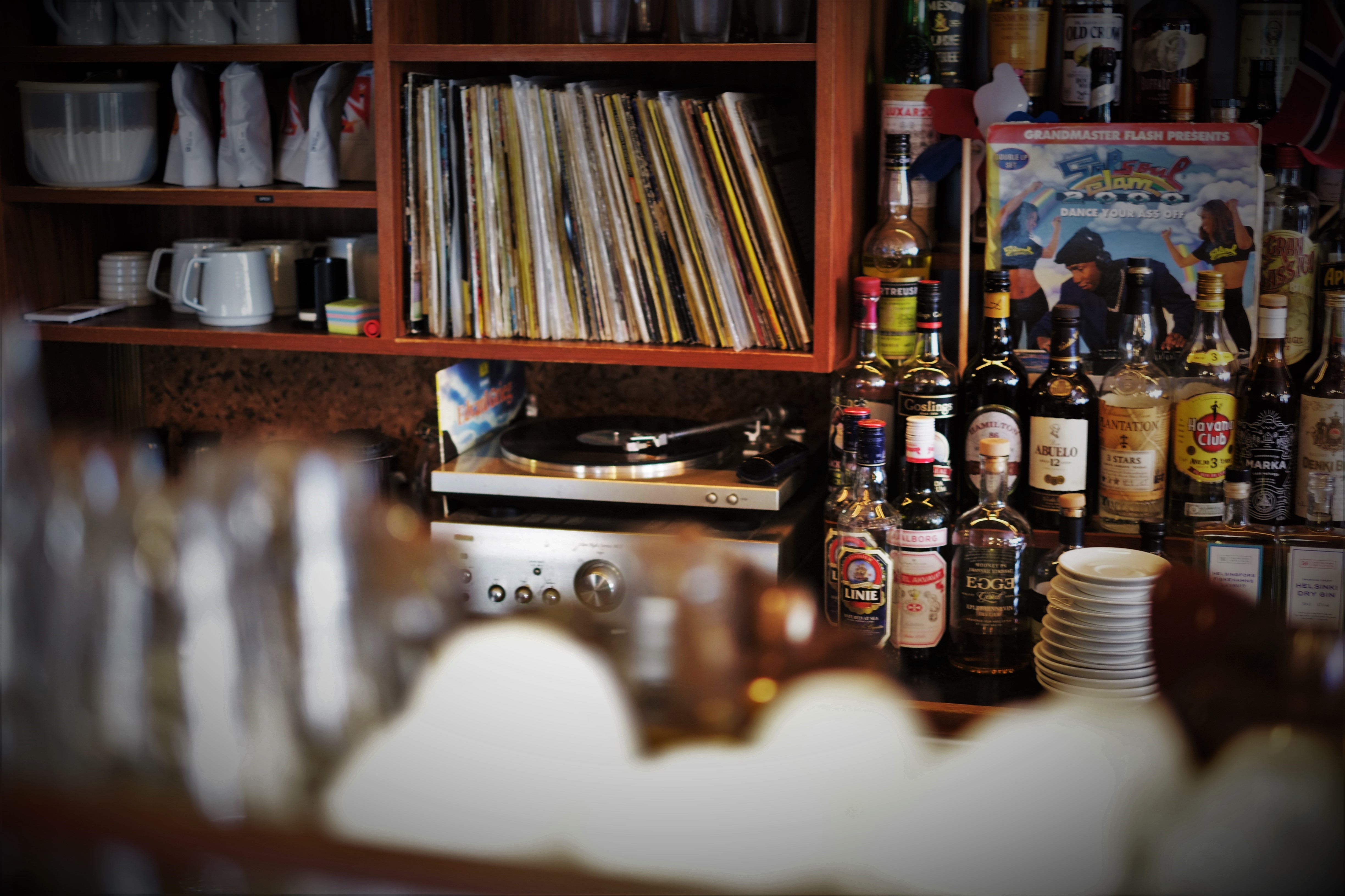 レコードプレーヤーから、ノルウェー人のオーナーが大切に選んだ90年代のヒップホップや古めかしいジャズまで味のあるレコードが流れます。