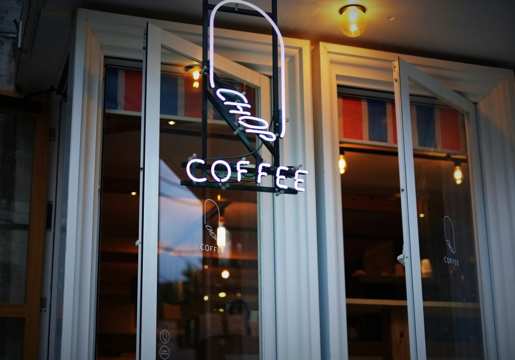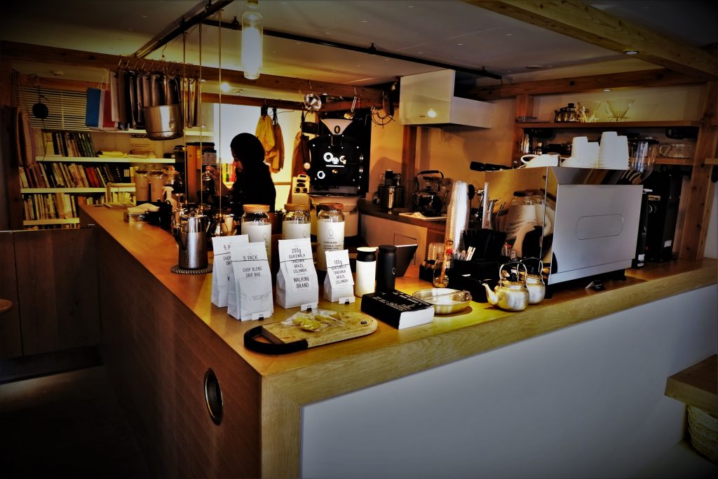 CHOP COFFEE のホームページによれば、最高のコーヒーには、しっかりと豆を挽くことが必要。ただ、完璧なコーヒーミルは中々見つからないもの。いっそのこと、1粒ずつ肉切り包丁で丁寧にCHOP(切る)したらいいんじゃないか。と笑って話していた時に、ハンコ(英語でCHOP)をお店のイメージにすることを考えたとのこと。
