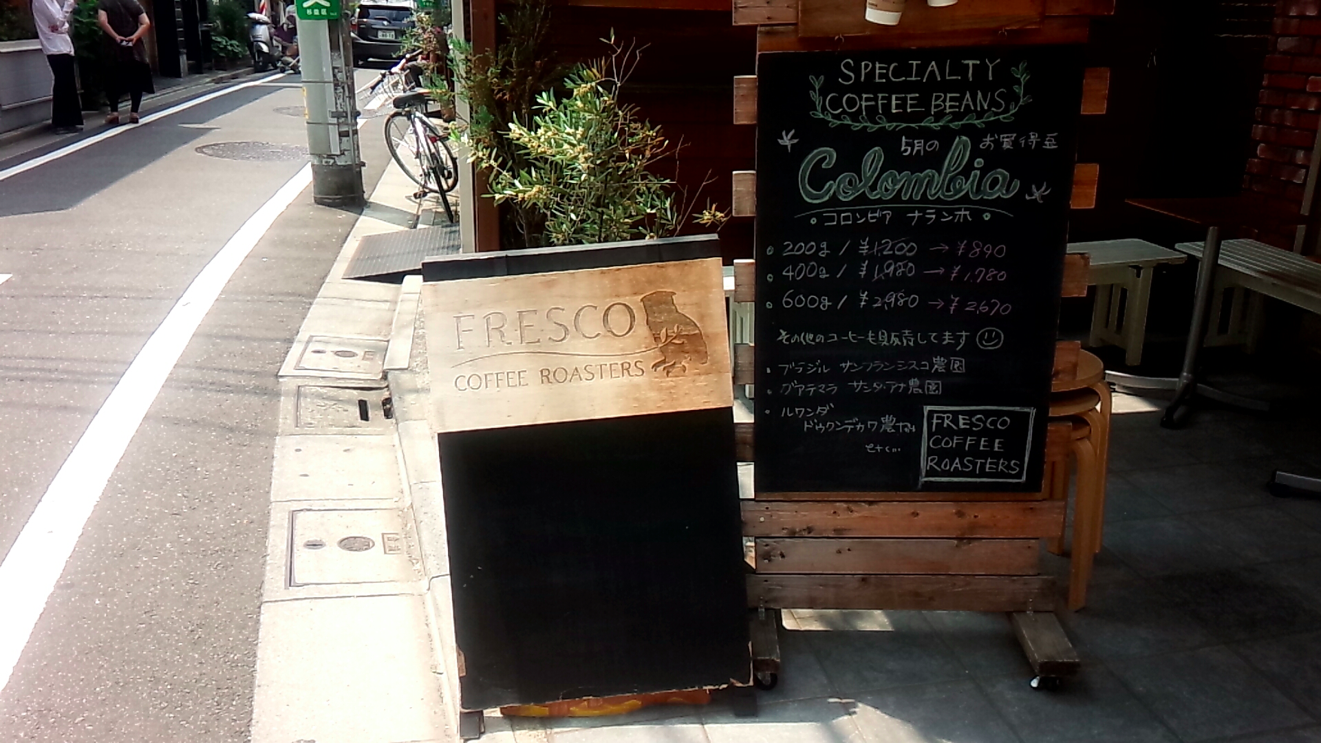 JR阿佐ヶ谷駅を出て、中杉通りを丸の内線の南阿佐ヶ谷駅の方に向かう途中、小道に一本入ります。すると、こぢんまりしたオシャレな雑貨屋やレストランがある通りになります。「FRESCO COFFEE ROASTERS」は角を曲がってすぐのところにあります。