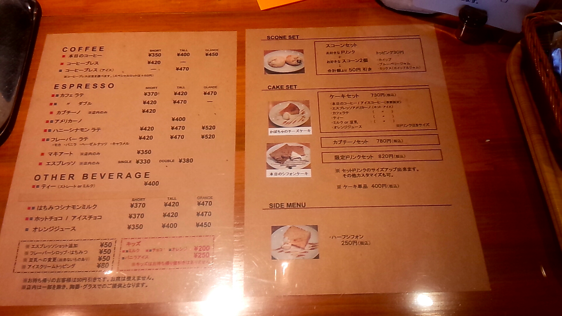 一杯の値段 330〜520円 |
